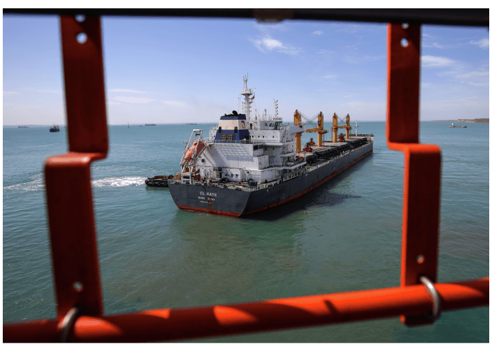 Судно у причала Таманского терминала навалочных грузов — первого и крупнейшего на территории Азово-Черноморского бассейна