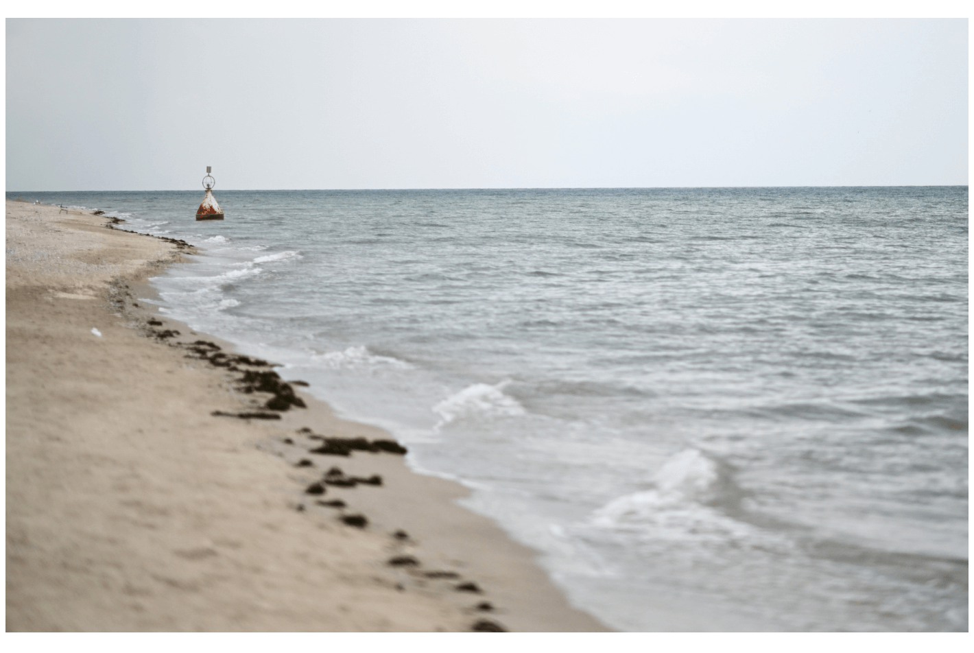 Пляж на Белосарайской косе на берегу Азовского моря — популярное место отдыха недалеко от Мариуполя