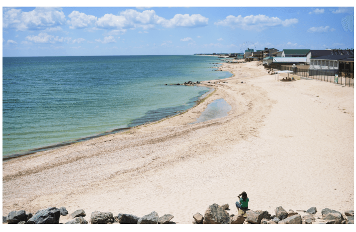 Пляж на берегу Азовского моря в поселке Кирилловка Запорожской области