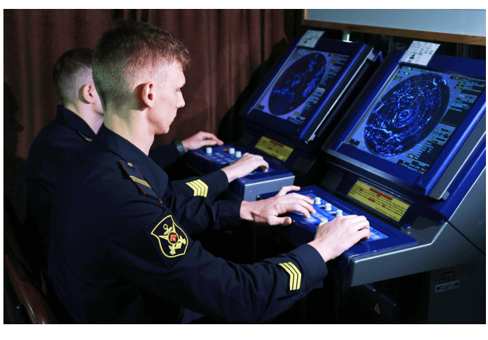 Военнослужащие на борту российского ракетного крейсера дальней морской и океанской зоны проекта 1164 «Атлант» «Маршал Устинов»