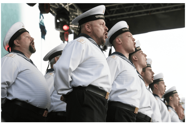 Моряки выступают на концерте в честь присоединения ЛНР, ДНР, Херсонской и Запорожской областей к России